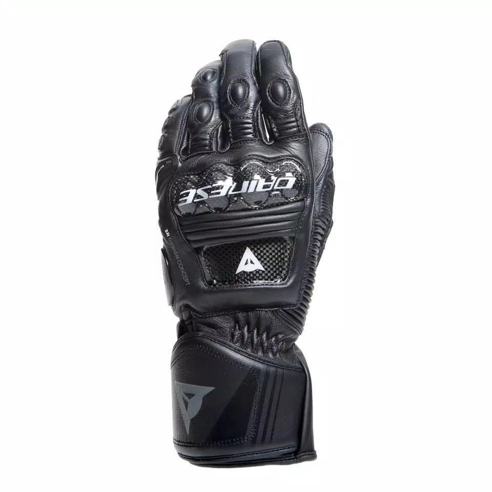 I guanti racing in pelle Dainese Druid 4 sono espressione dei più alti standard di protezione, studiati per la massima performance in pista e su strada. La sicurezza e l'ergonomia da motomondiale sono garantite dalla presenza del manicotto precurvato e termoformato, degli inserti in carbonio su nocche e dorso e dalla protezione termoplastica sul mignolo. La massima resistenza è garantita dagli inserti in poliuretano sul palmo e sulle giunture, mentre la quadrupla elasticizzazione assicura grande comfort e un fit sempre perfetto.